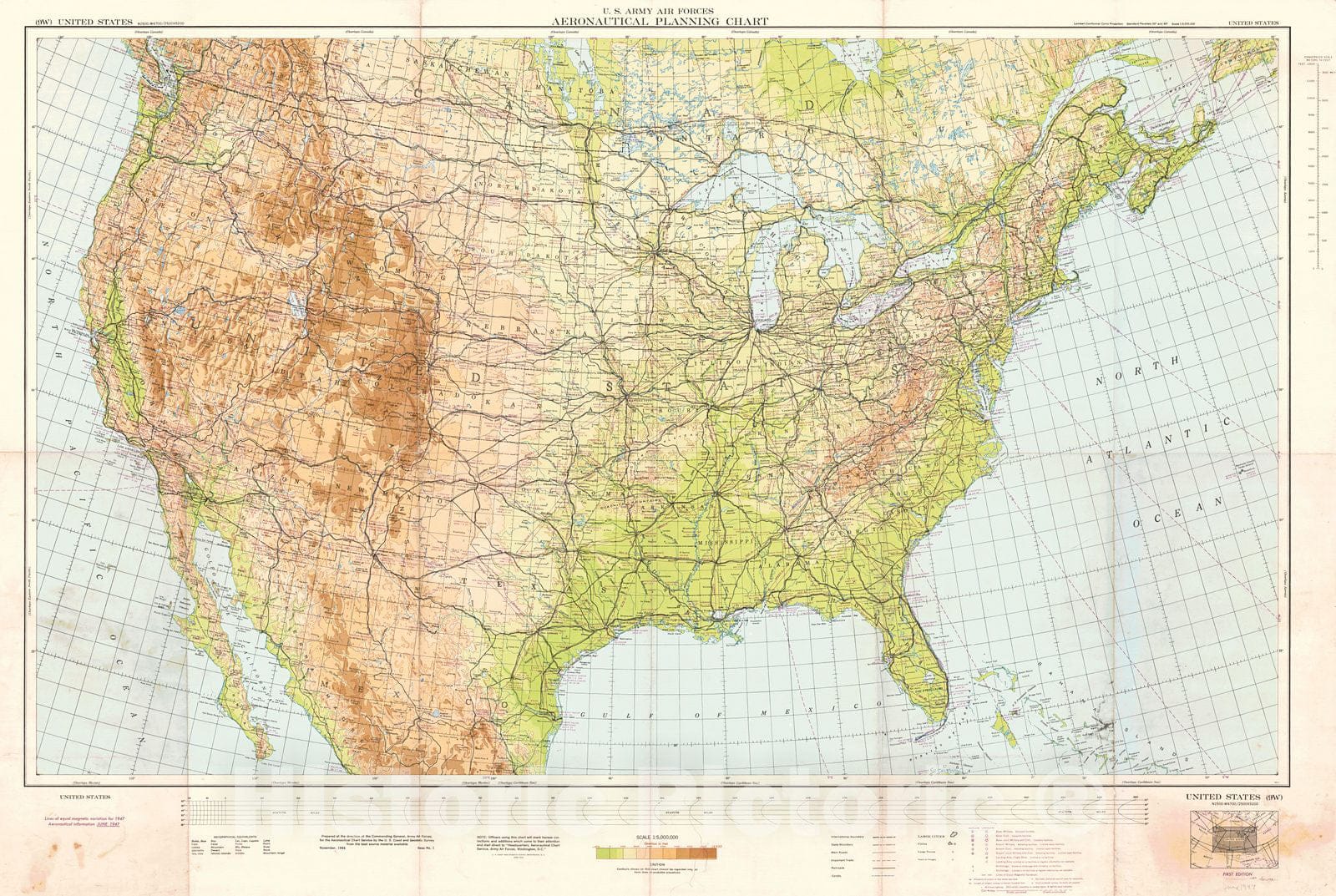Historic Map : 1947 U.S. Army Air Forces Aeronautical Planning Chart: United States (9W) : Vintage Wall Art