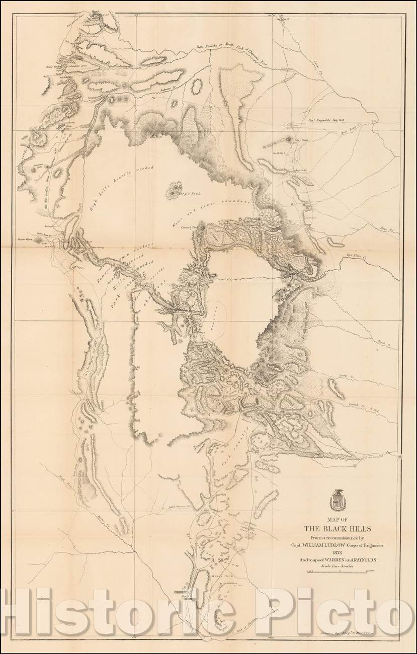 Historic Map - The Black Hills from a reconnaissance, 1874, United States Bureau of Topographical Engineers - Vintage Wall Art