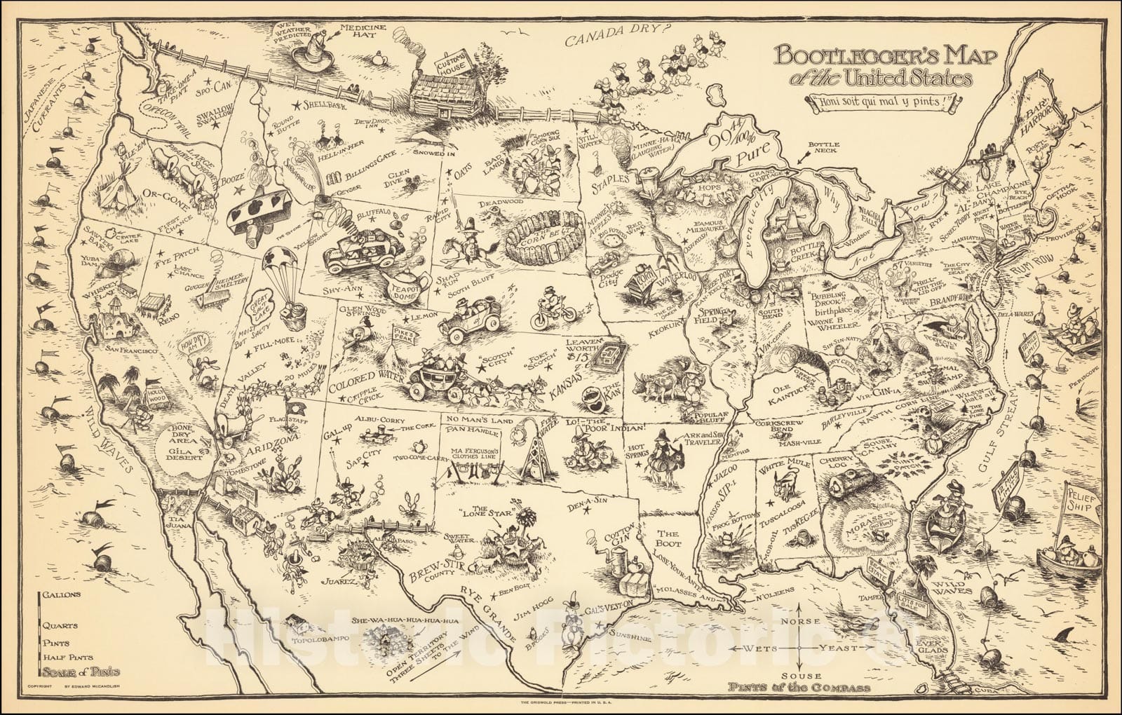 Historic Map : Bootlegger's Map of the United States . . ., 1926, Edward Gerstell McCandlish, v1, Vintage Wall Art