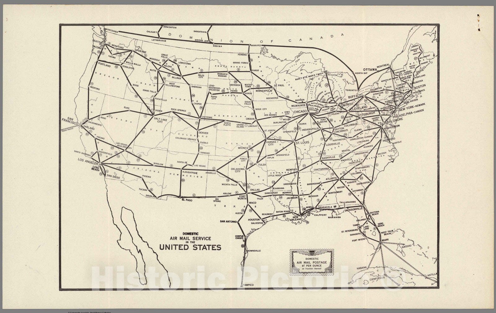 Historic Map : Calgary to England Mail Service, Domestic Air Mail Service in the United States. 1939 - Vintage Wall Art