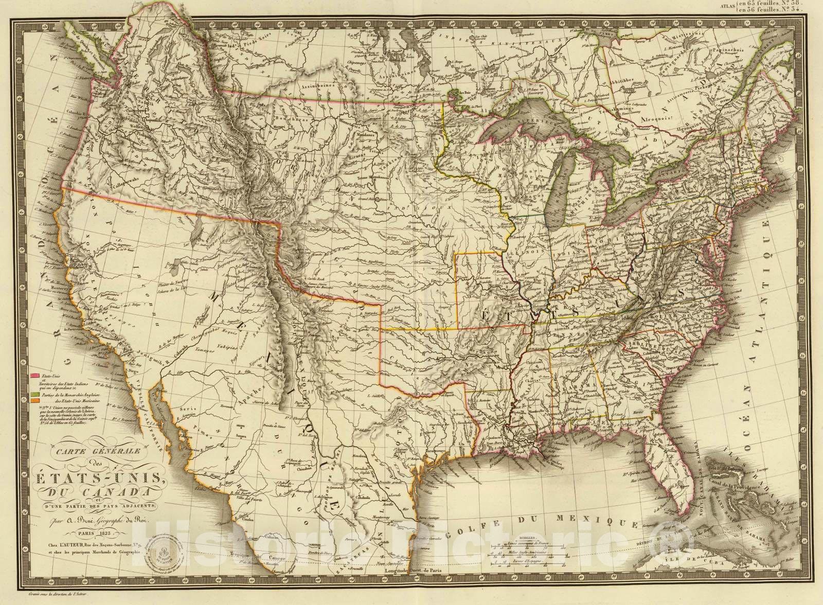 Historic Map : Canada; United States, , North America 1825 Etats-UNIS, Canada. , Vintage Wall Art