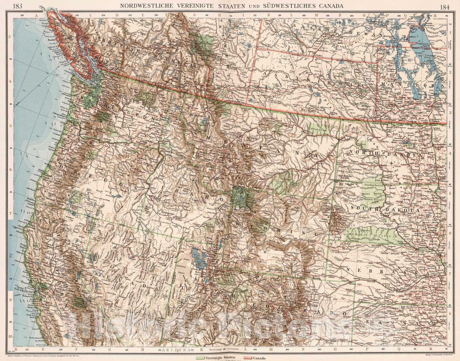 Historic Map : Canada; United States, , North America 1905 Nordwestliche Vereinigte Staaten und Sudwestliches Canada , Vintage Wall Art