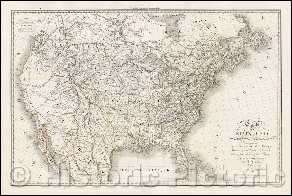 Historic Map - Carte Des Etats Unis De L'Amerique Septentrionale Comprenant aussi/Map of the United States, Maps by Arrowsmith and Melish, 1830 - Vintage Wall Art
