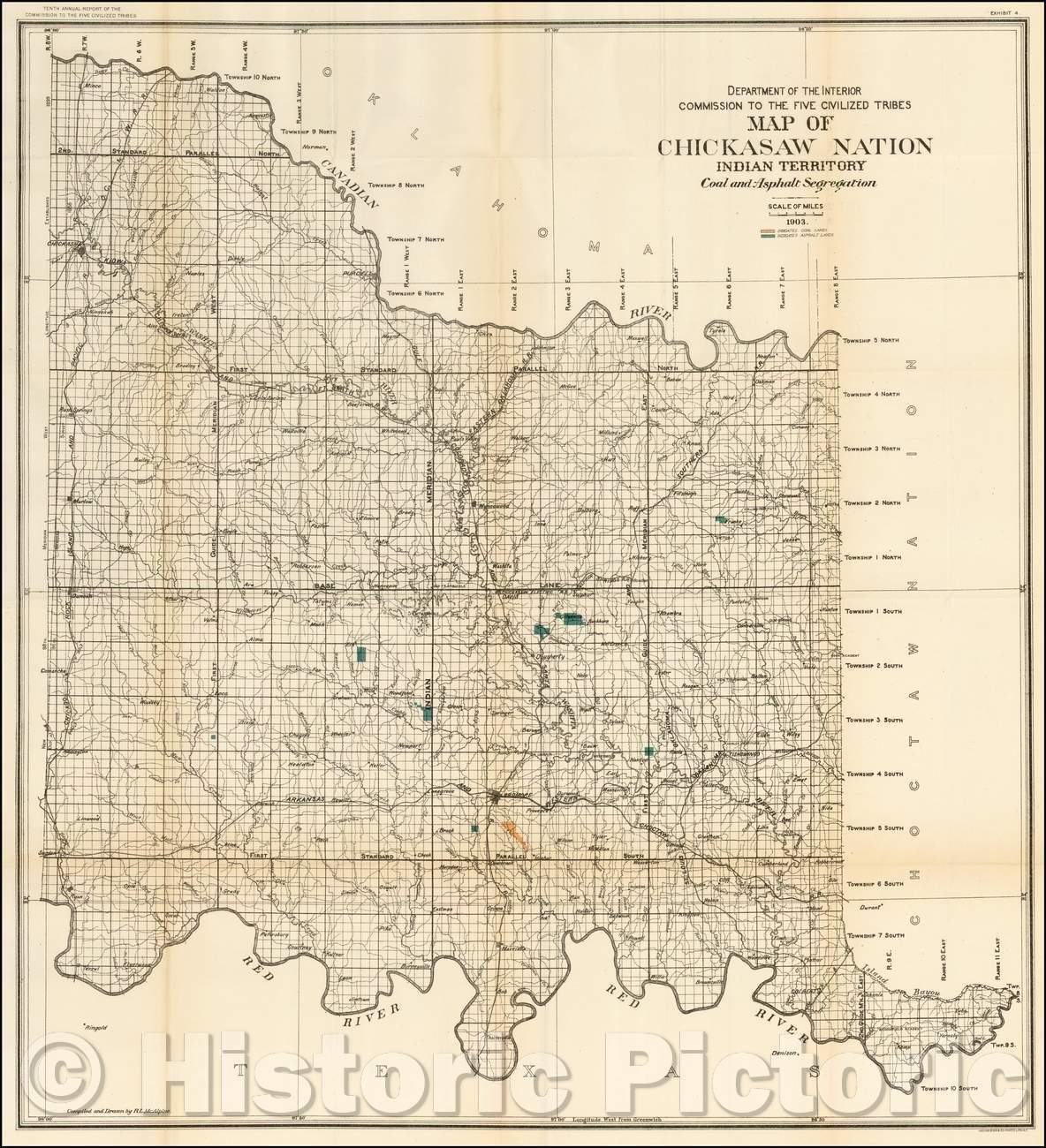 • .Historic Map - Map of Chickasaw Nation, Indian Territory, Coal and Asphalt Segregation, 1903, United States Department of the Interior v2