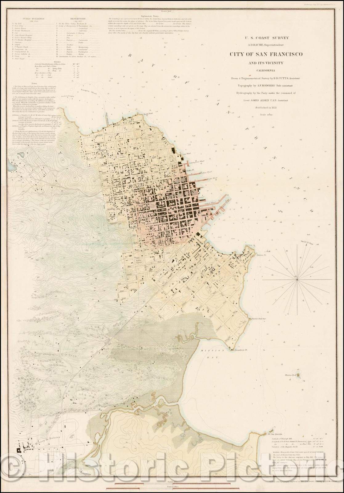 Historic Map - City of San Francisco and It's Vicinity, 1853, United States Coast Survey - Vintage Wall Art