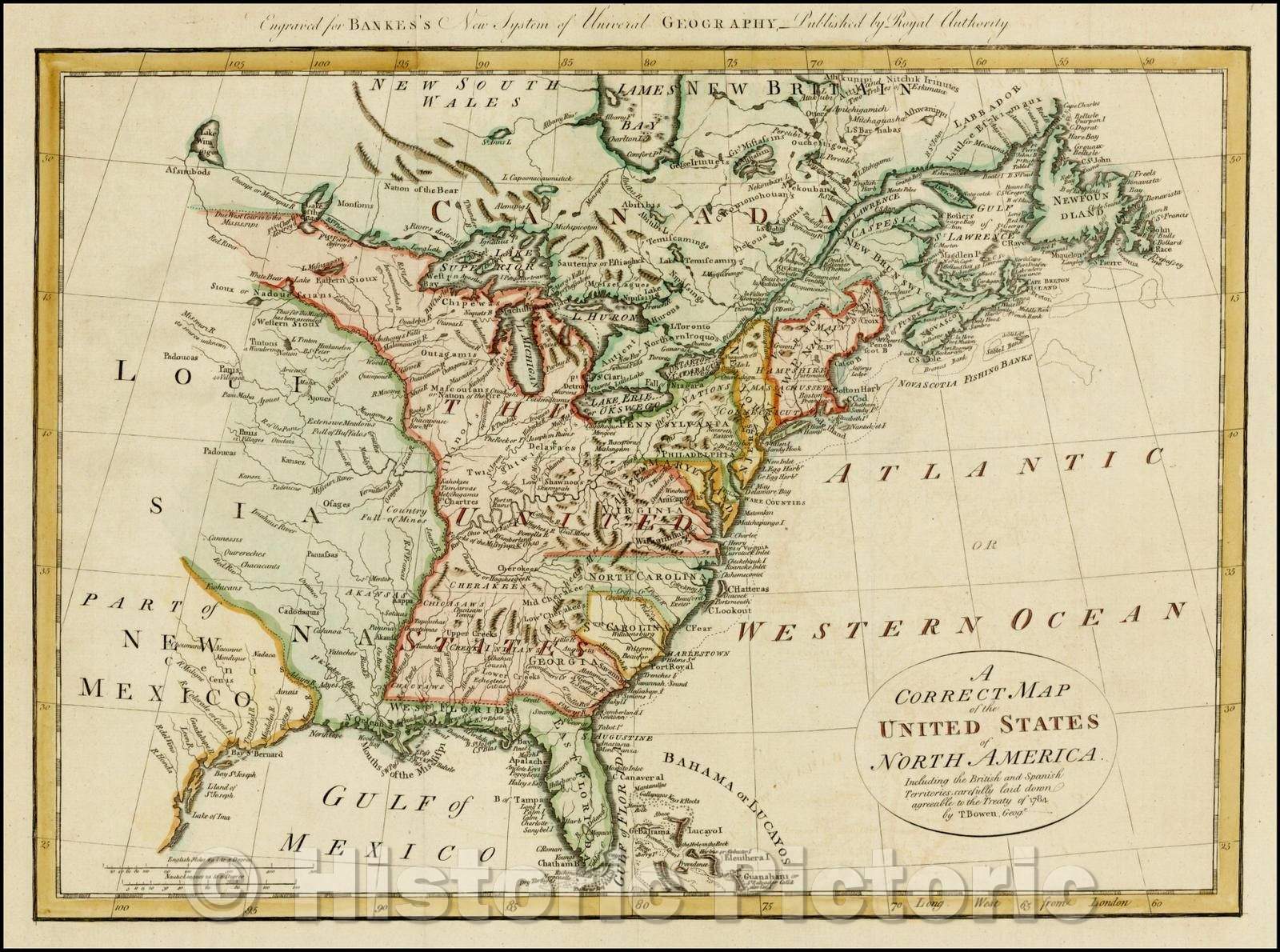 Historic Map - A Correct Map of the United States of North America. Including the British and Spanish Territories, 1787, Thomas Bowen v1