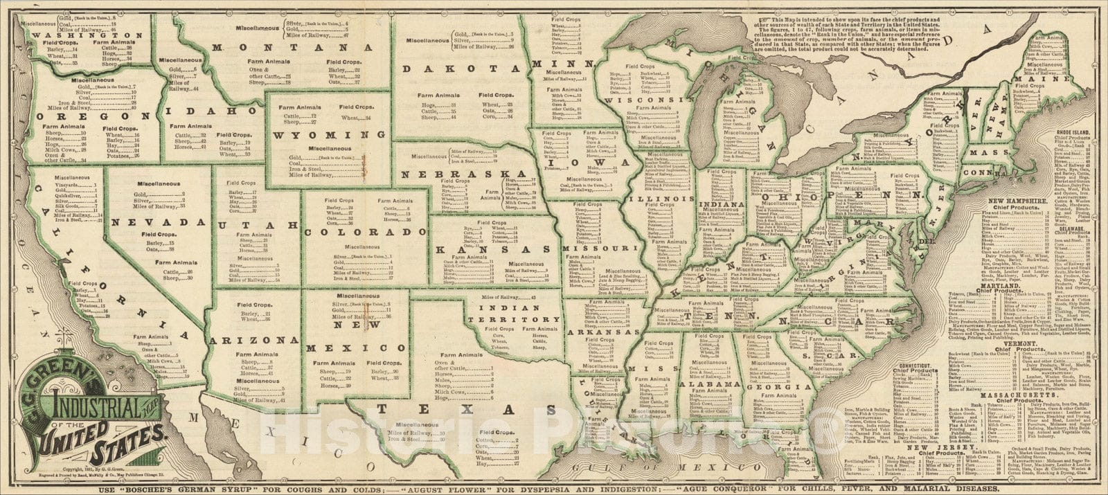 G. G. Green's Industrial Map of the United States, ., 1881, G. G. Green