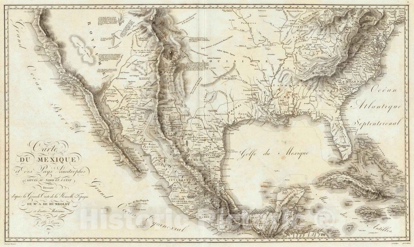 Historic Map : Mexico; United States, , West Indies Carte Du Mexique et des Pays Limitrophes Situes Au Nord. 1811 , Vintage Wall Art