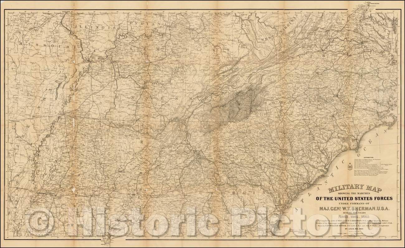 Historic Map - Military Map Showing the Marches of the United States Forces Under Command of Maj. Genl. W.T. Sherman, 1865, Ferdinand Mayer & Co. - Vintage Wall Art