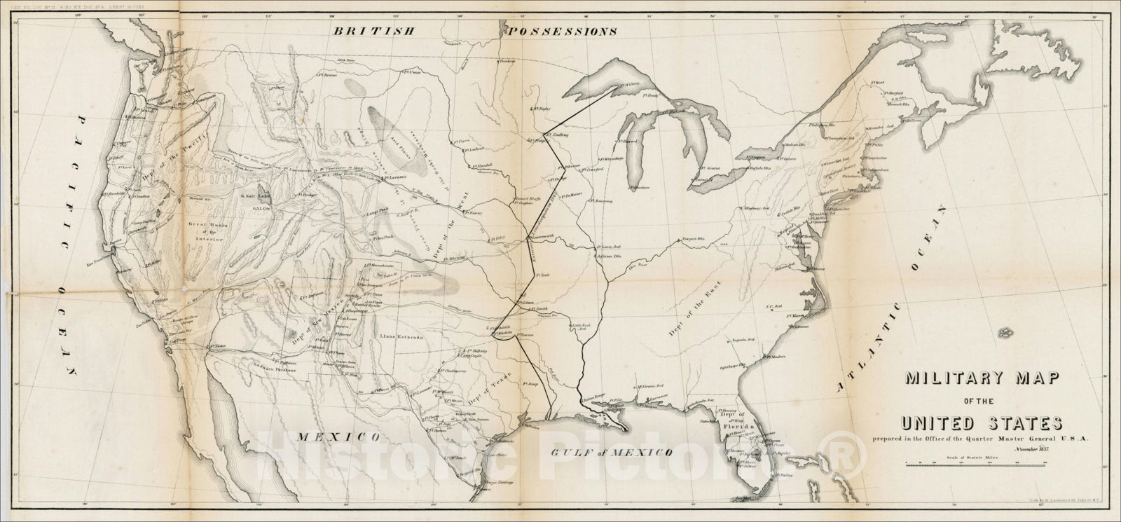 Historic Map : Military Map of the United States prepared in the Office of the Quarter Master General U.S.A. November 1857, 1857, , Vintage Wall Art