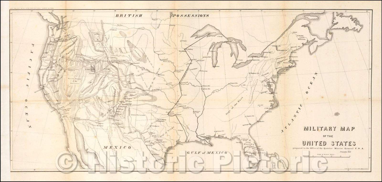 Historic Map - Military Map of the United States prepared in the Office of the Quarter Master General U.S.A. November, 1857, U.S. War Department - Vintage Wall Art