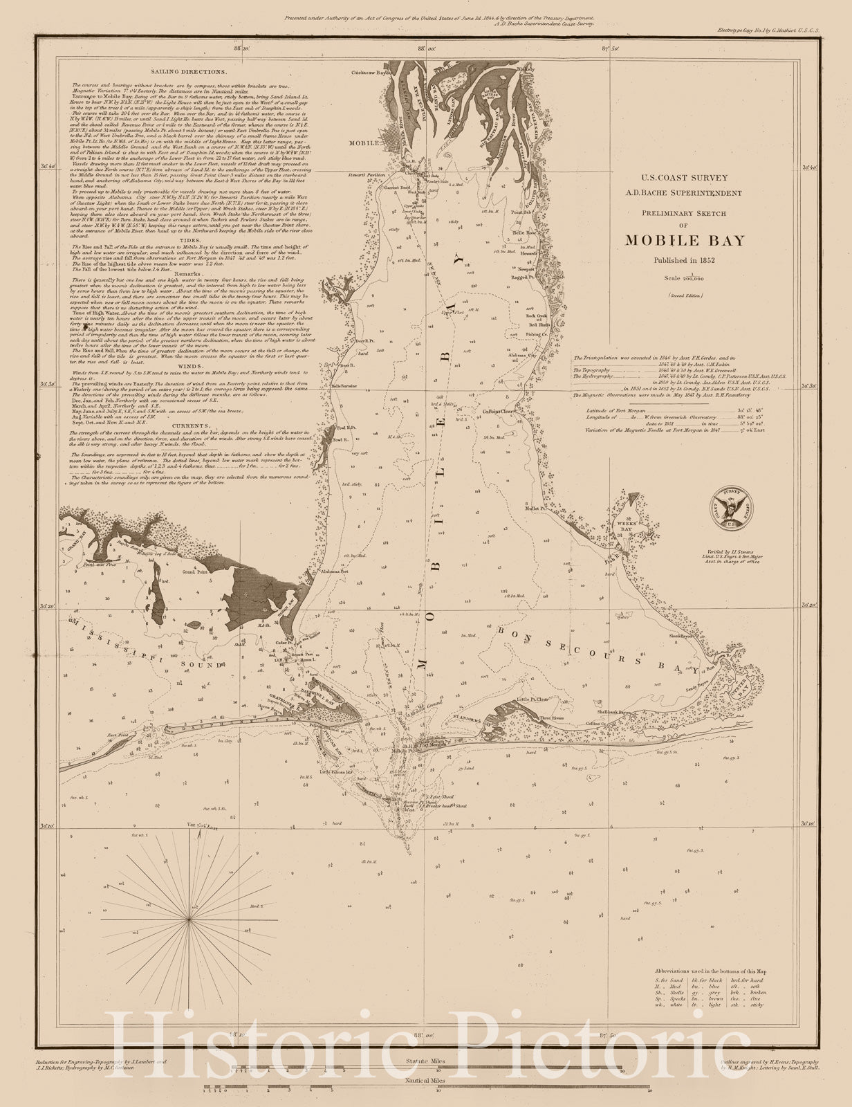Historic Map - Mobile Bay Alabama From the Trigonometrical Survey, 1856, United States Coast Survey - Vintage Wall Art