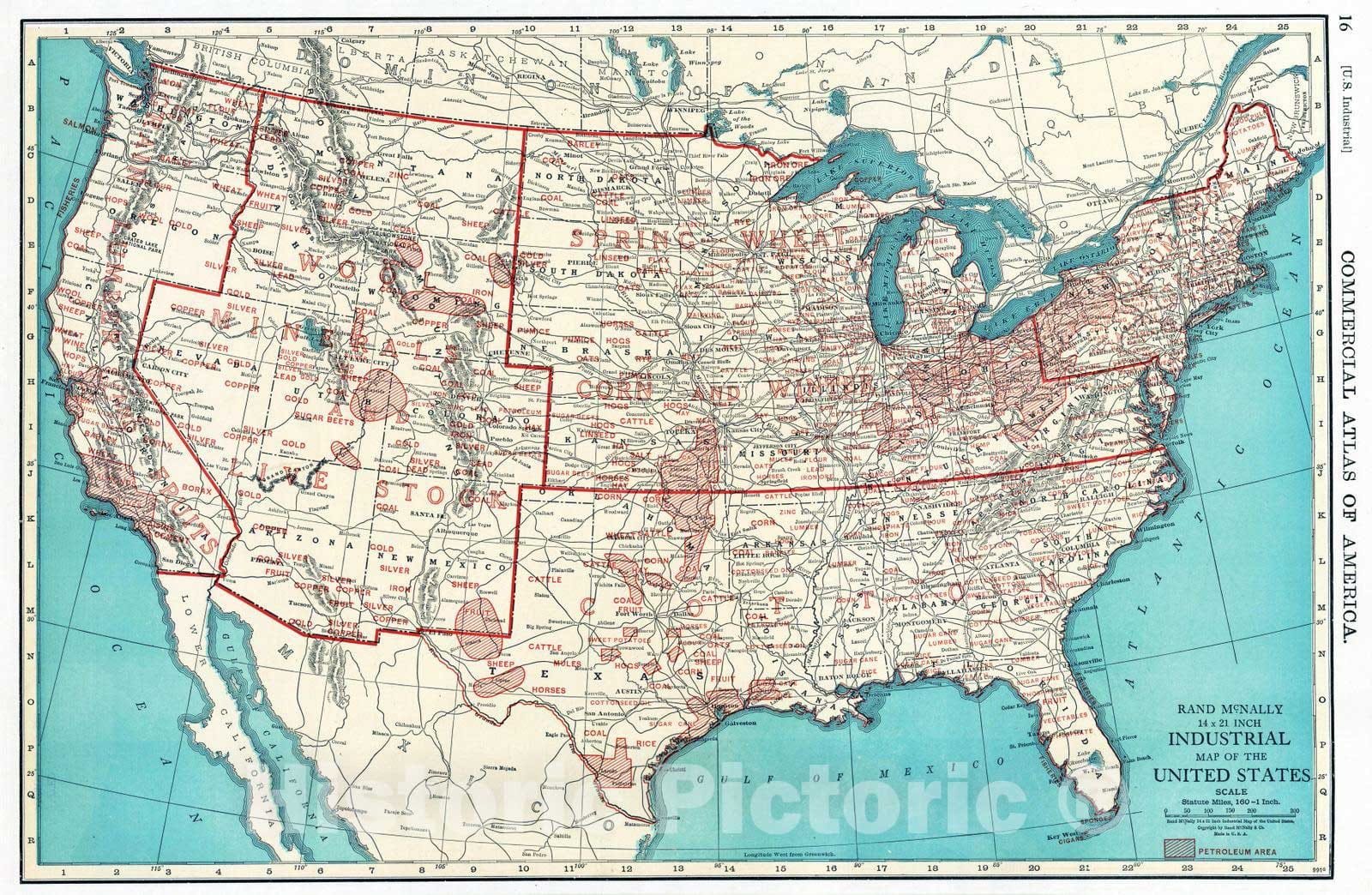 Historic Map : National Atlas - 1924 Industrial Map of the United States. - Vintage Wall Art