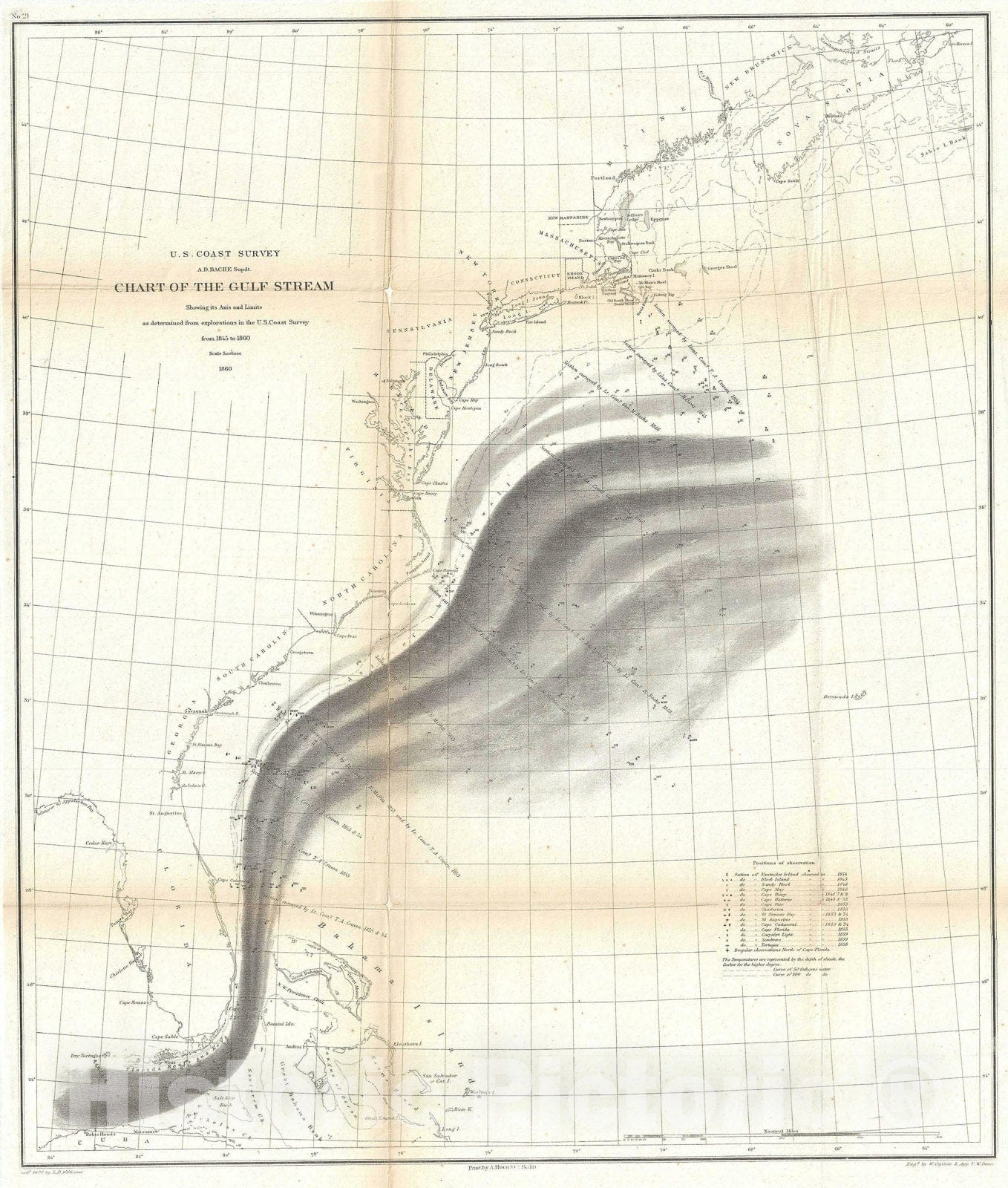 Historic Map : Nautical Chart Gulf Stream and The East Coast of The United States, U.S. Coast Survey, 1860, Vintage Wall Art