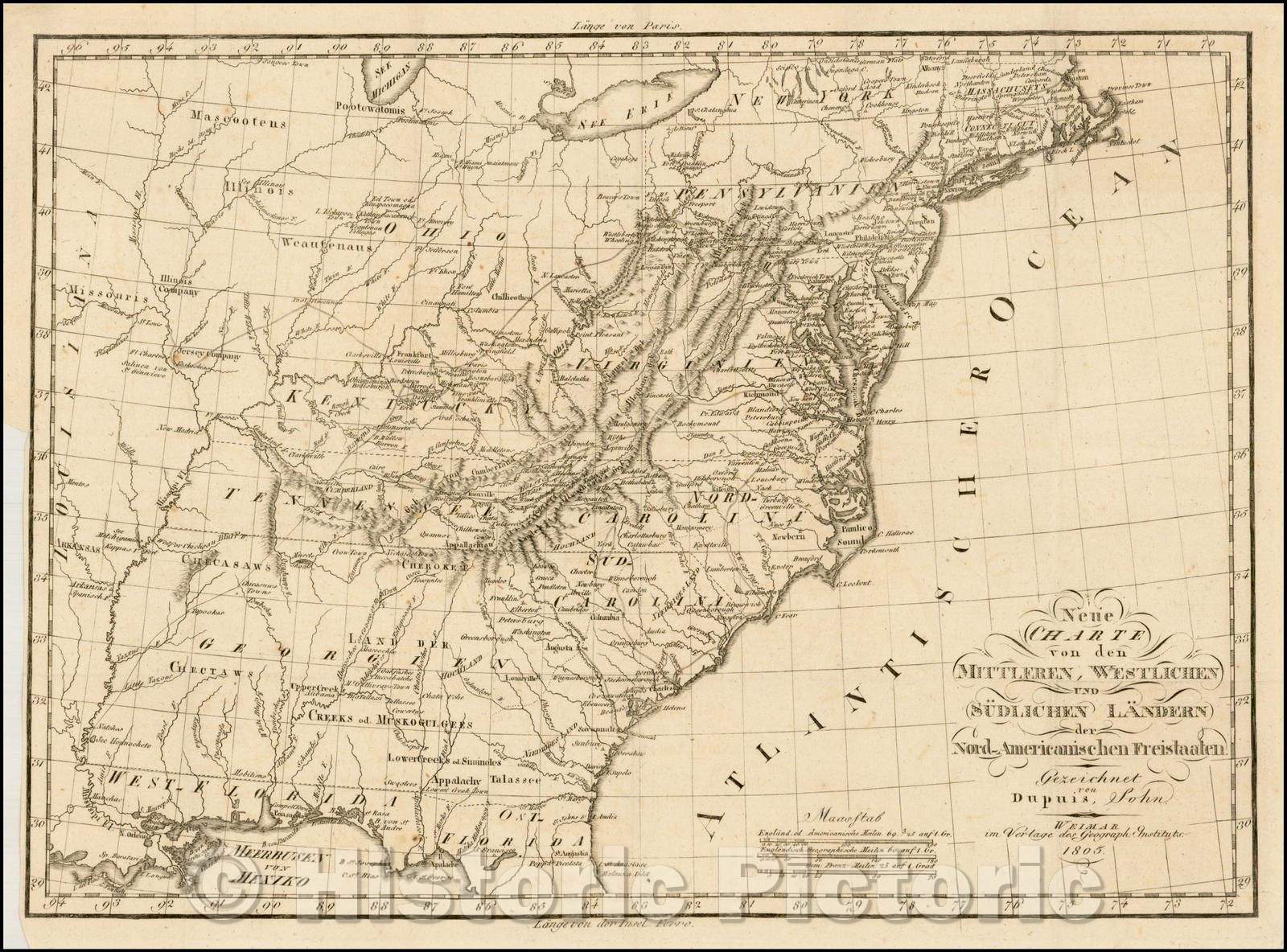 Neue Charte von den Mittleren Westlichen und Sudlichen Landern / German Map of the United States, 19th Century., 1805