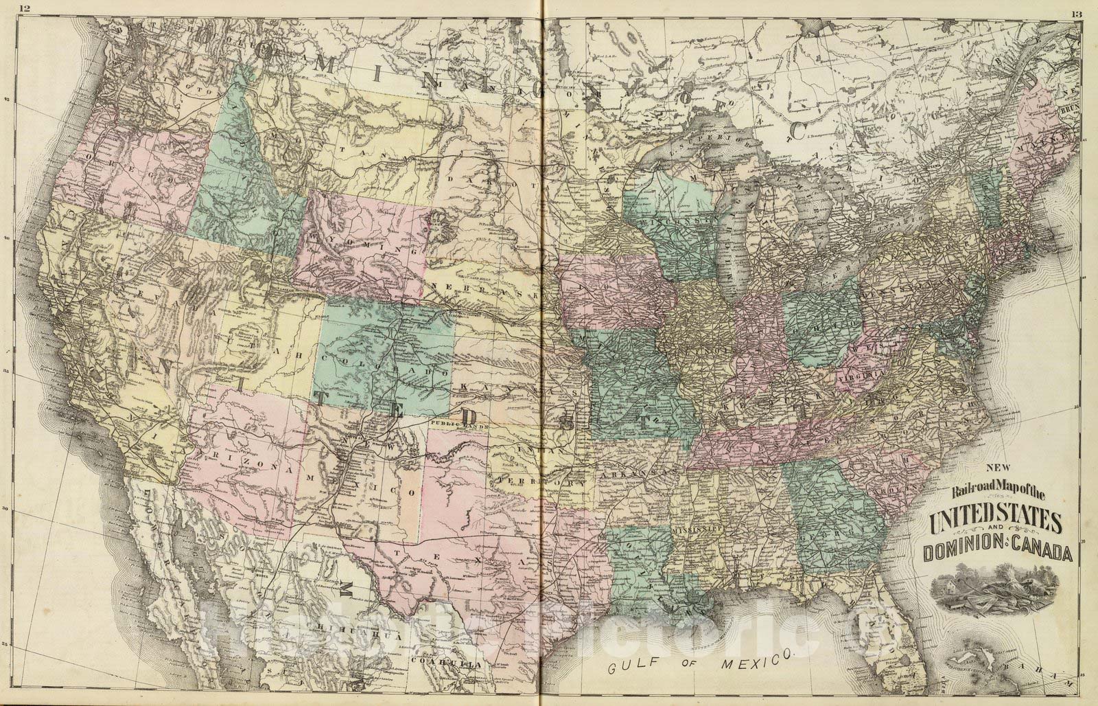 Historic Map : New railroad map of the United States and Dominion of Canada, 1876 - Vintage Wall Art
