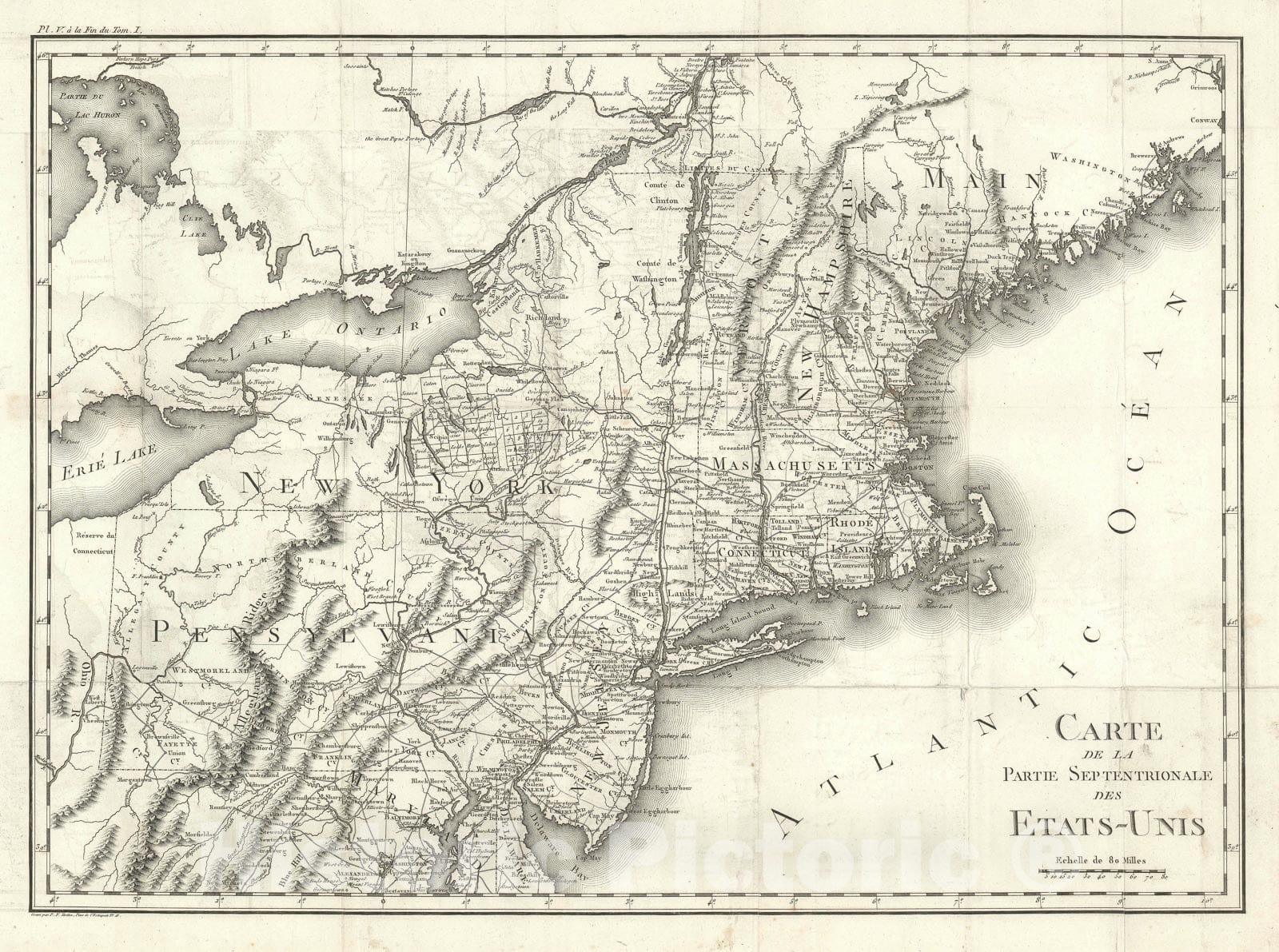 Historic Map : The Northeastern United States w/Military Tracts, Tardieu, 1801, Vintage Wall Art