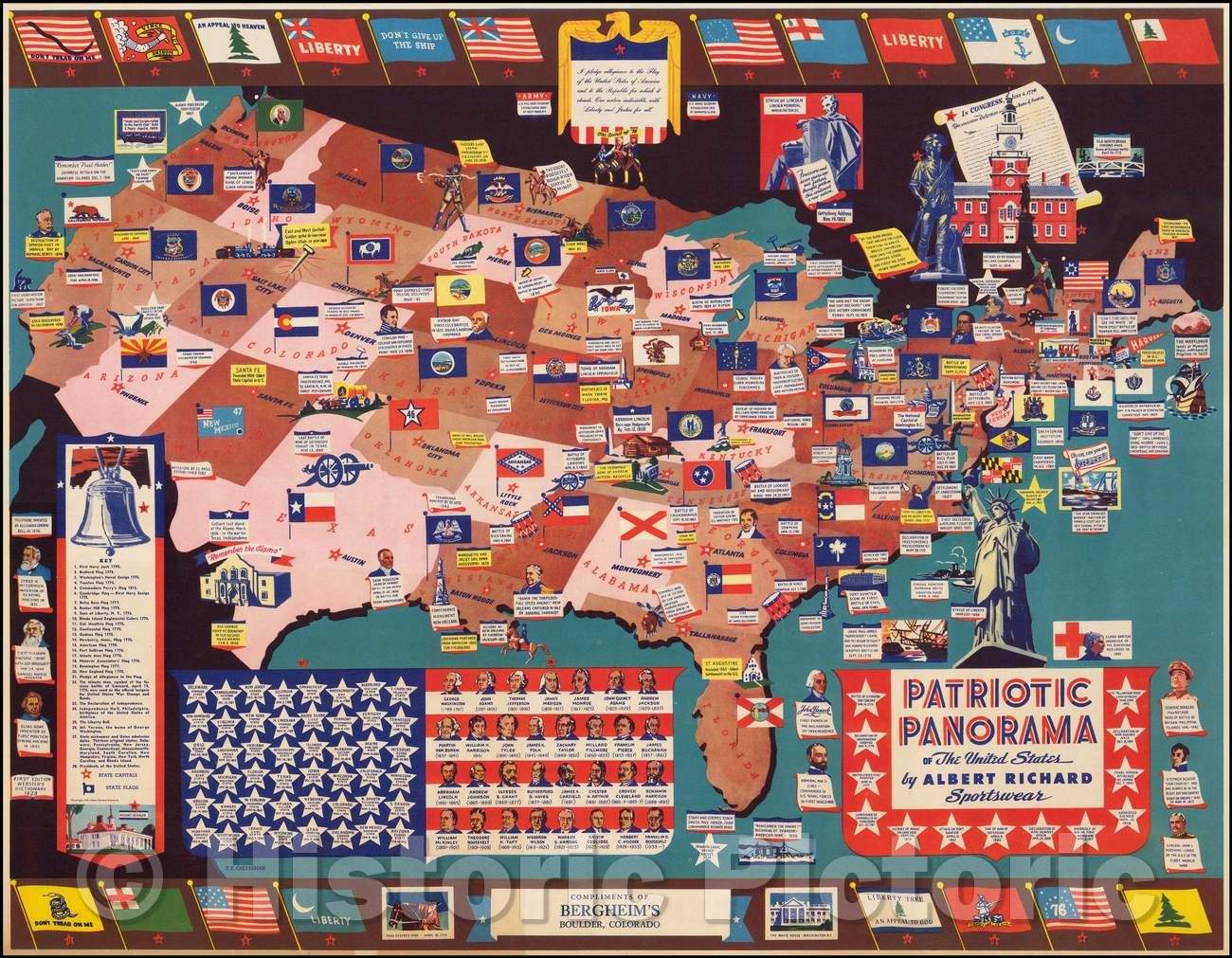 • .Historic Map - Patriotic Panorama of the United States, 1942, F. E. Cheeseman v1