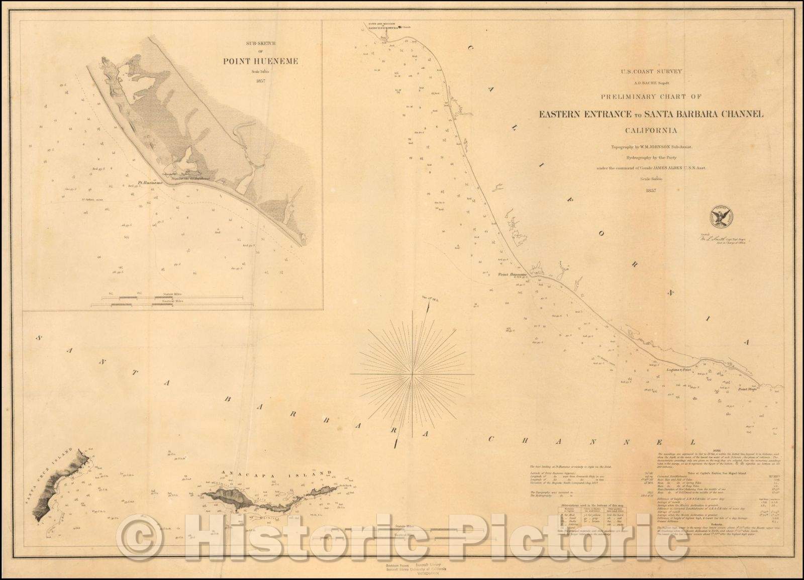 Historic Map - Preliminary Chart of Eastern Entrance of Santa Barbara Channel, 1857, United States Coast Survey - Vintage Wall Art