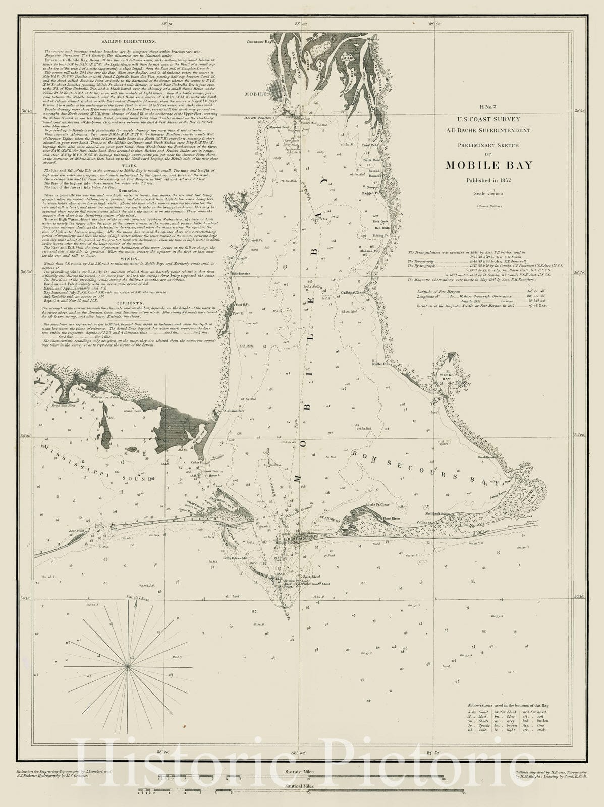 Preliminary Sketch of Mobile Bay Published in 1852, 1852, United States Coast Survey