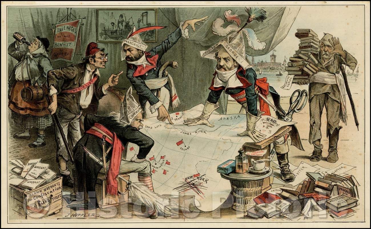 Satirical Map Cartoon with Map of the United States, 1885, Joseph Ferdinand Keppler