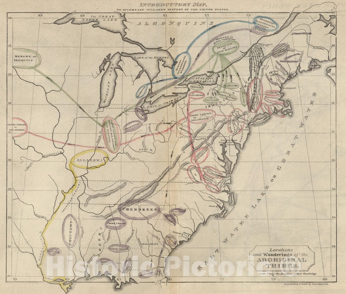 Historic Map : School Atlas - 1829 Introductory Map To Accompany Willard's History Of The United States - Vintage Wall Art