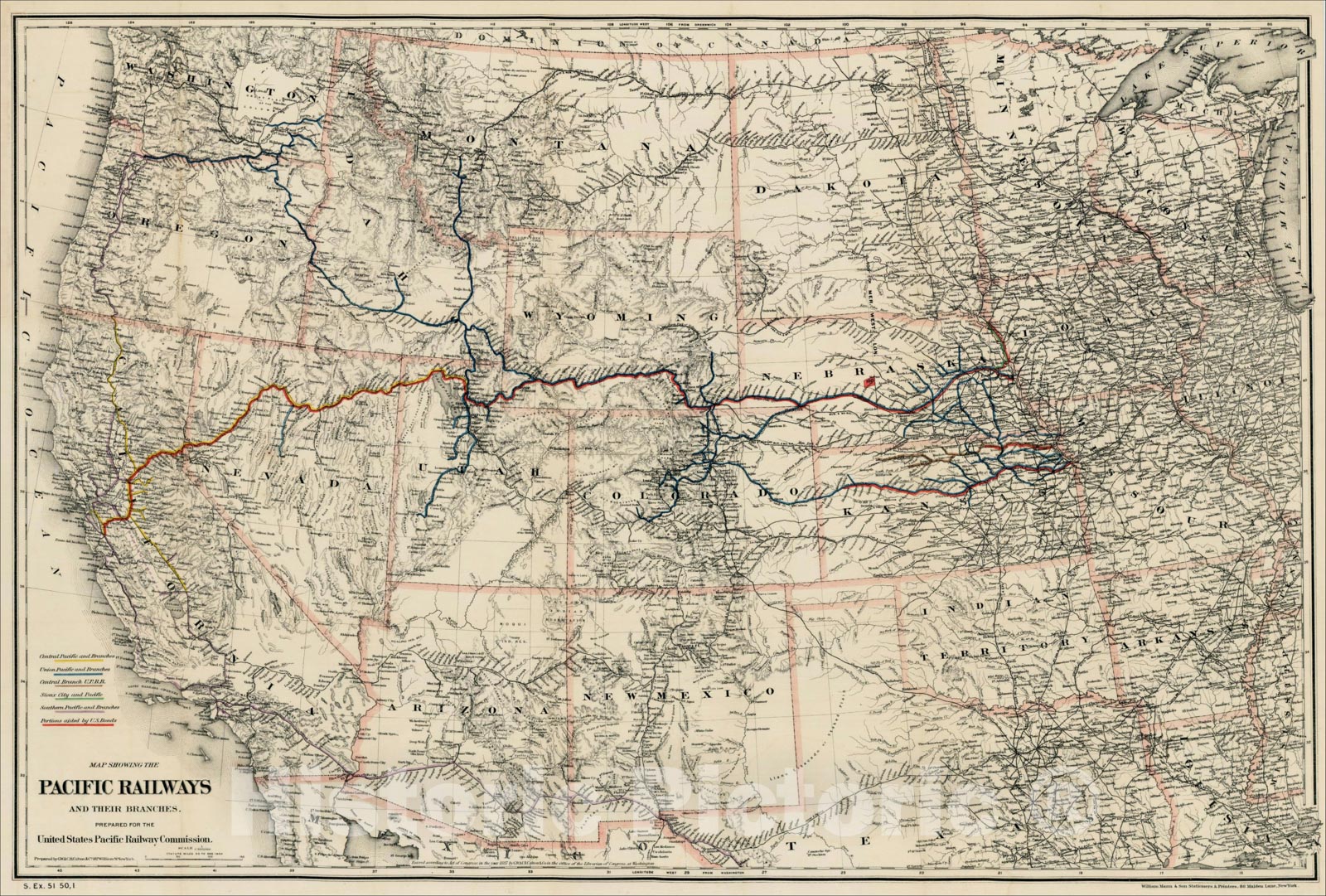 • .Historic Map : Map Showing The Pacific Railways and Their Branches. Prepared for the United States Pacific Railway Commission., 1887, v2, Vintage Wall Art