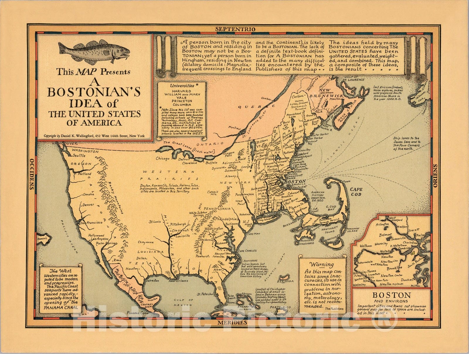 Historic Map : This map presents a Bostonian's idea of the United States of America, 1930 - Vintage Wall Art