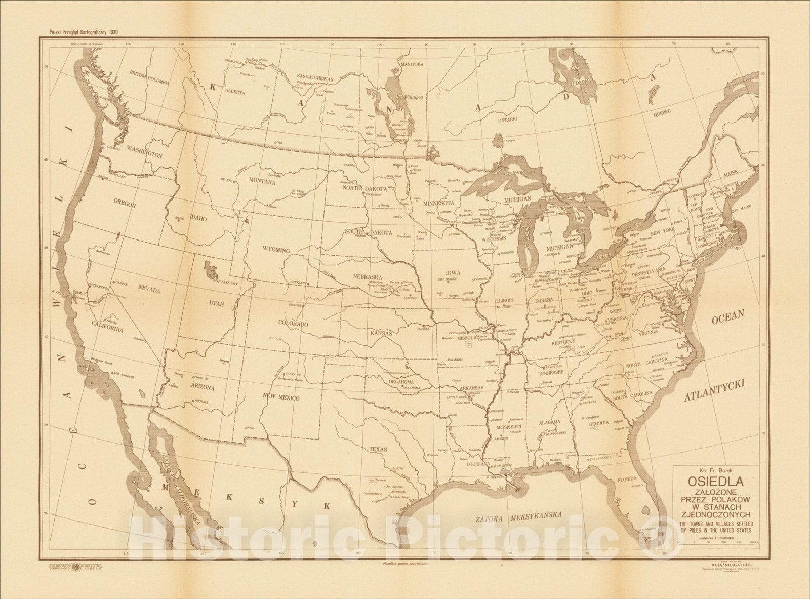 Historic Map : The Towns and Villages Settled By Poles in the United States, 1930, Franciszek Bolek, Vintage Wall Art
