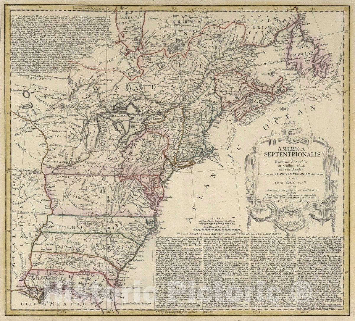 Historic Map : United States, 1777 America Septentrionalis. , Vintage Wall Art