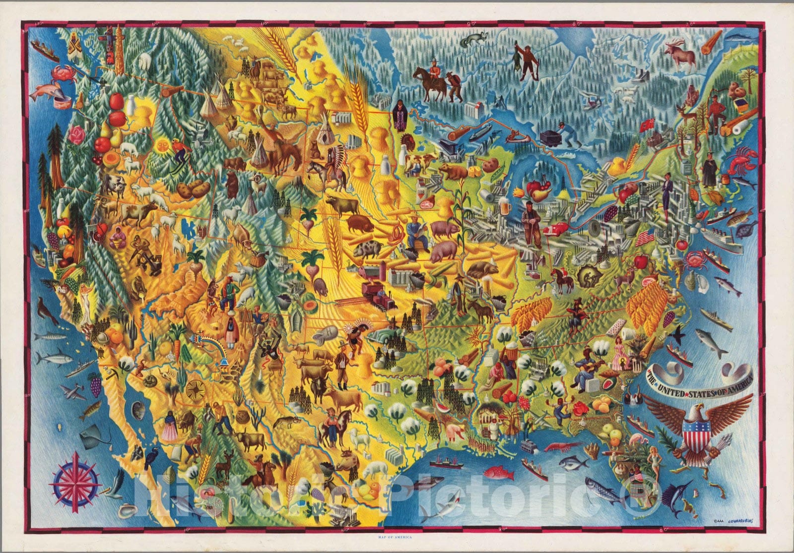 Historic Map : United States of America. Covarrubias. (C) A.A.A. Map of America, 1940 - Vintage Wall Art