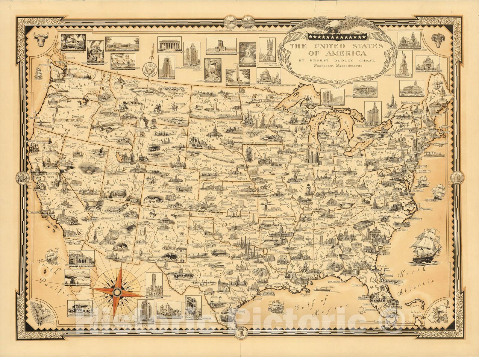 Historic Map : The United States of America. By Ernest Dudley Chase 1935 - Vintage Wall Art
