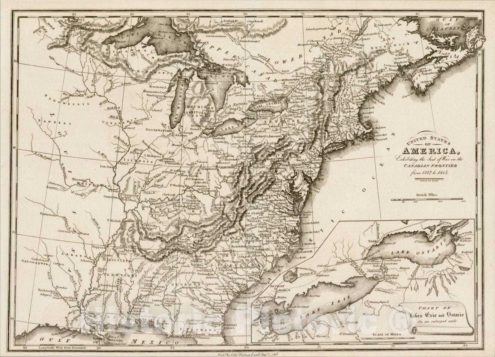 Historic Map : United States of America Exhibiting the Seat of War on the Canadian Frontier from 1812 to 1815, 1816, Edward Baines, Vintage Wall Art
