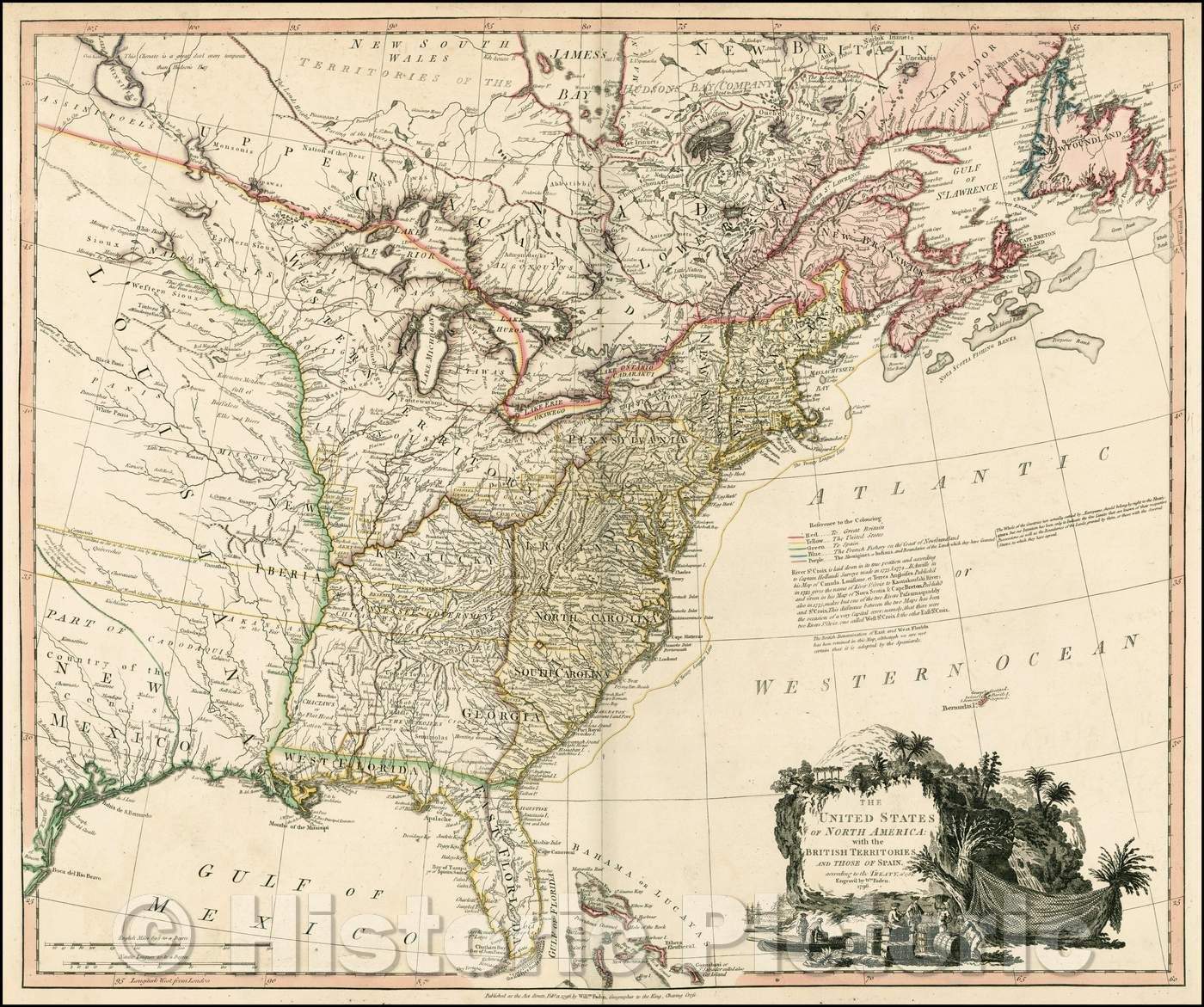 Historic Map - The United States of North America with the British Territories And Those of Spain, 1796, William Faden v1