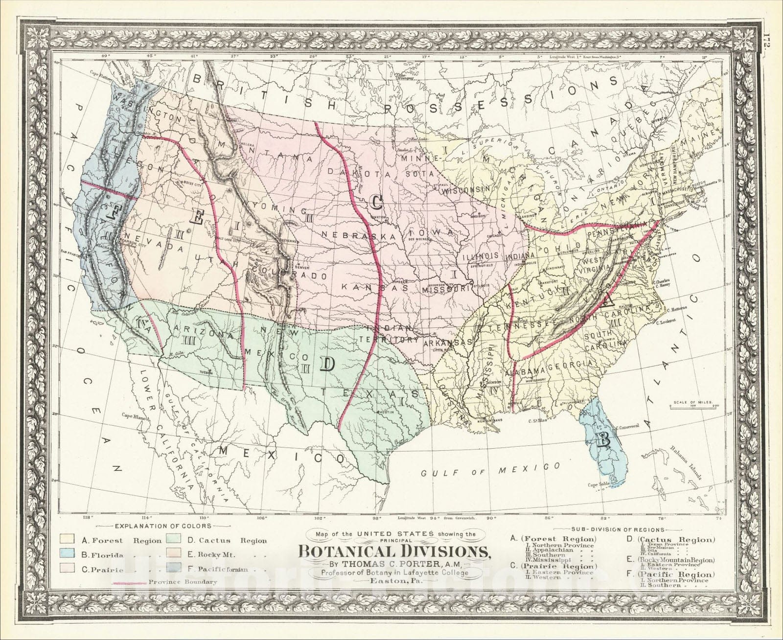Map of the United States Showing the Principal Botanical Divisions, 1878, O.W. Gray