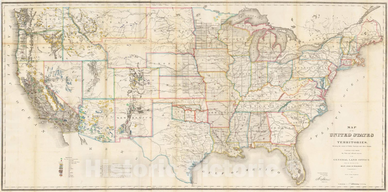 Historic Map - Map of the United States and Territories, Shewing the extent of Public Surveys and other details, 1866, U.S. General Land Office v2