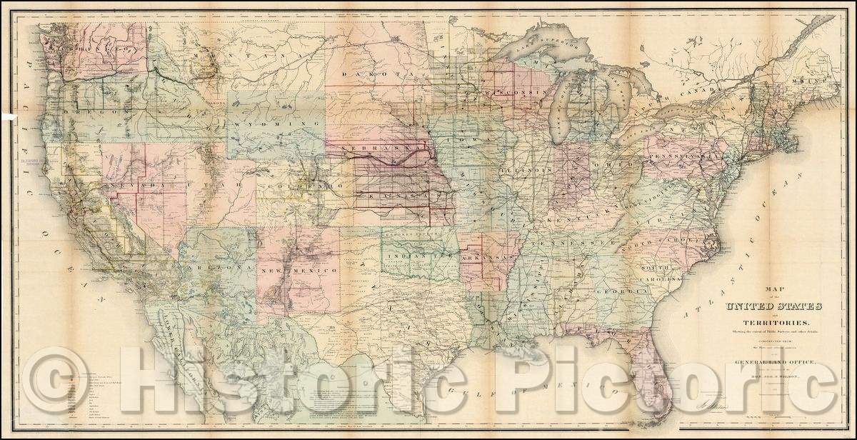 Historic Map - Map of the United States and Territories, Showing the extent of Public Surveys and other Details, 1870, U.S. General Land Office - Vintage Wall Art