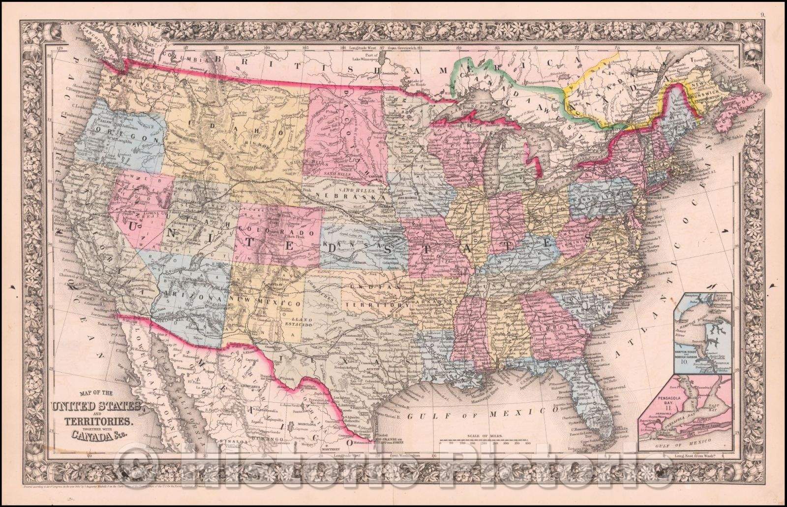 Historic Map - Map of the United States And Territories, Together with Canada, 1865, Samuel Augustus Mitchell Jr. v2