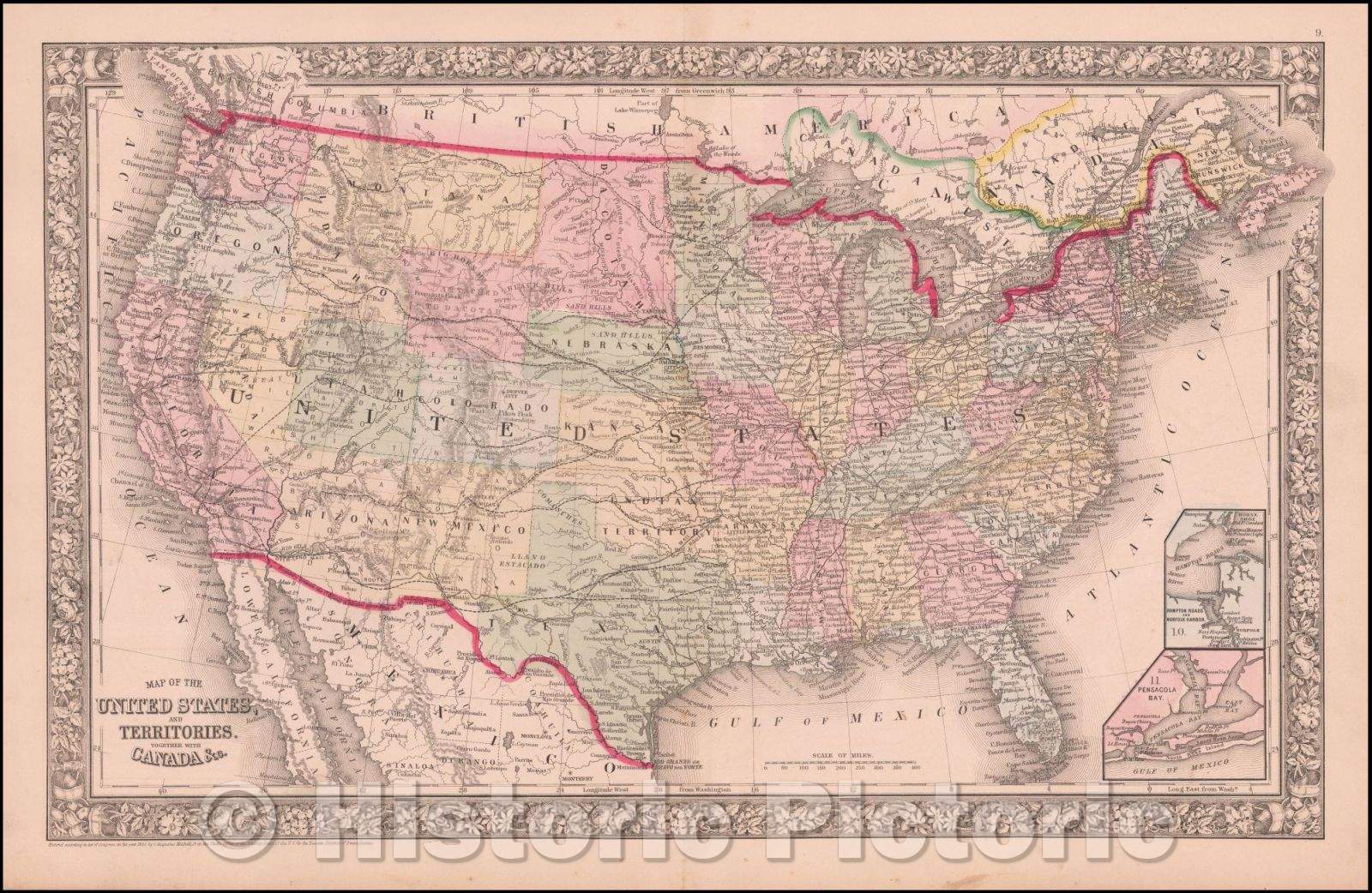 Historic Map - Map of the United States And Territories, Together with Canada, 1865, Samuel Augustus Mitchell Jr. v1