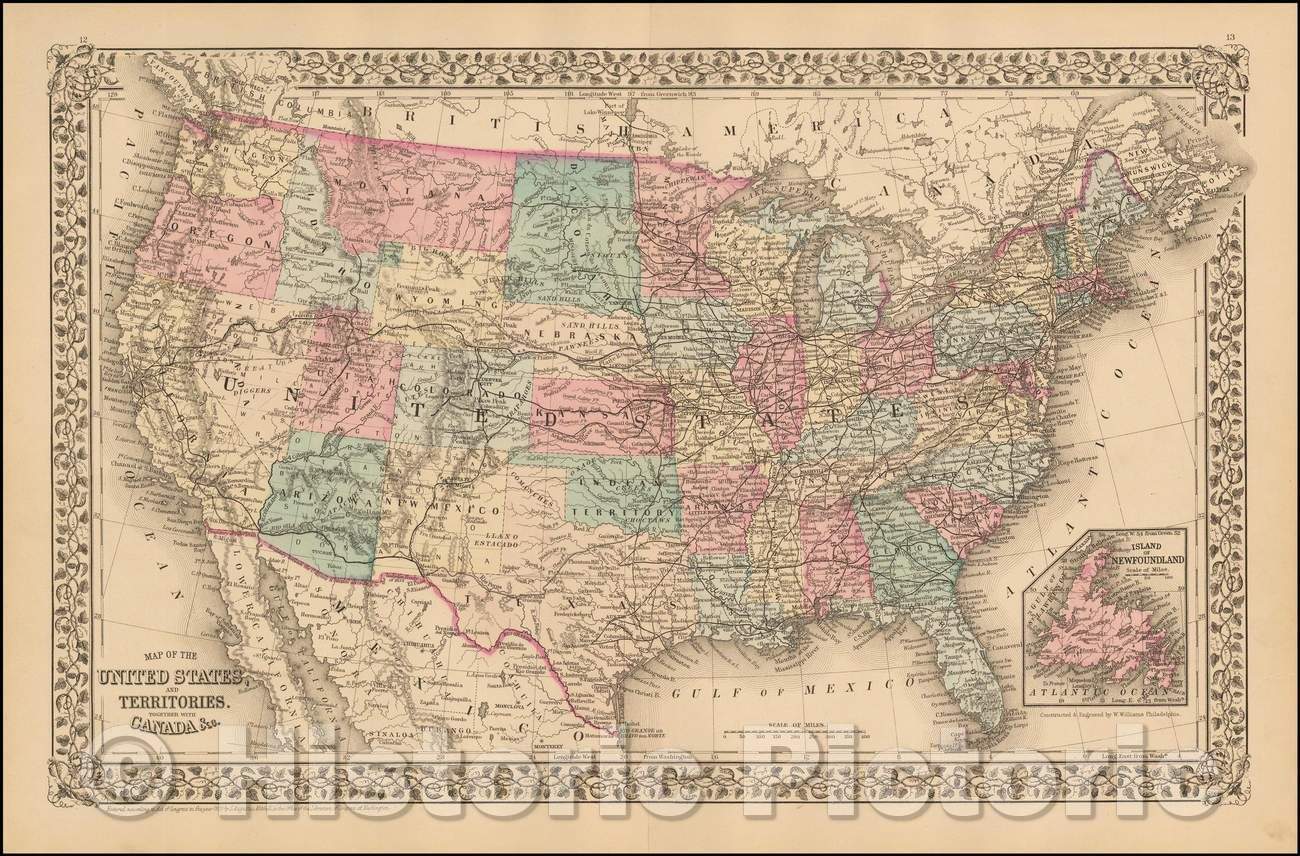 Historic Map - Map of the United States And Territories, Together with Canada, 1878, Samuel Augustus Mitchell Jr. v2