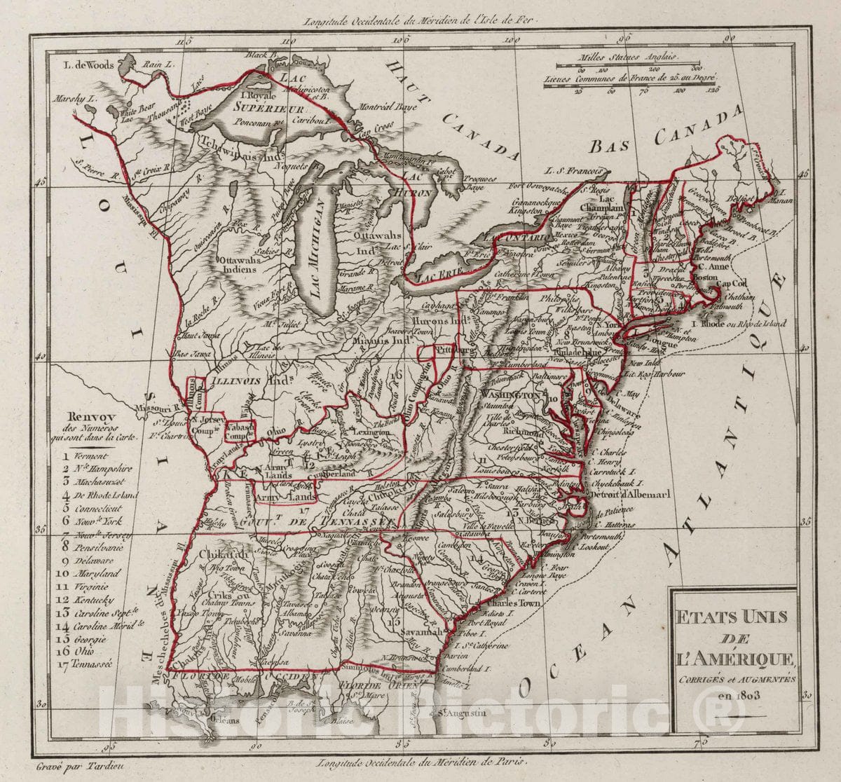 Historic Map : United States, XXXI. Etats UNIS de l'Amerique, 1803 Atlas , Vintage Wall Art