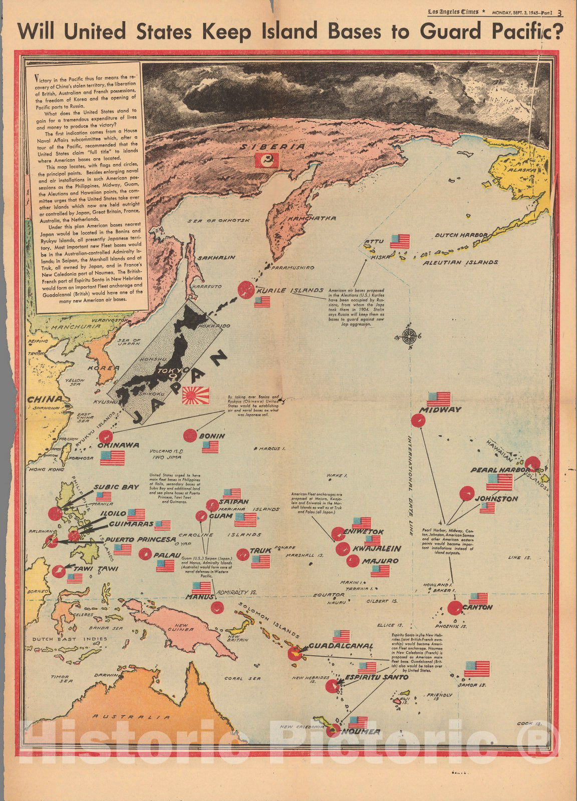 Will United states keep island bases to guard Pacific? Los Angeles times. Monday, Sept. 3, 1944 - Part 3. | Will United states keep island bases to guard Pacific? Los Angeles times. Monday, Sept. 3, 1944 - Part 3. | See note field above.