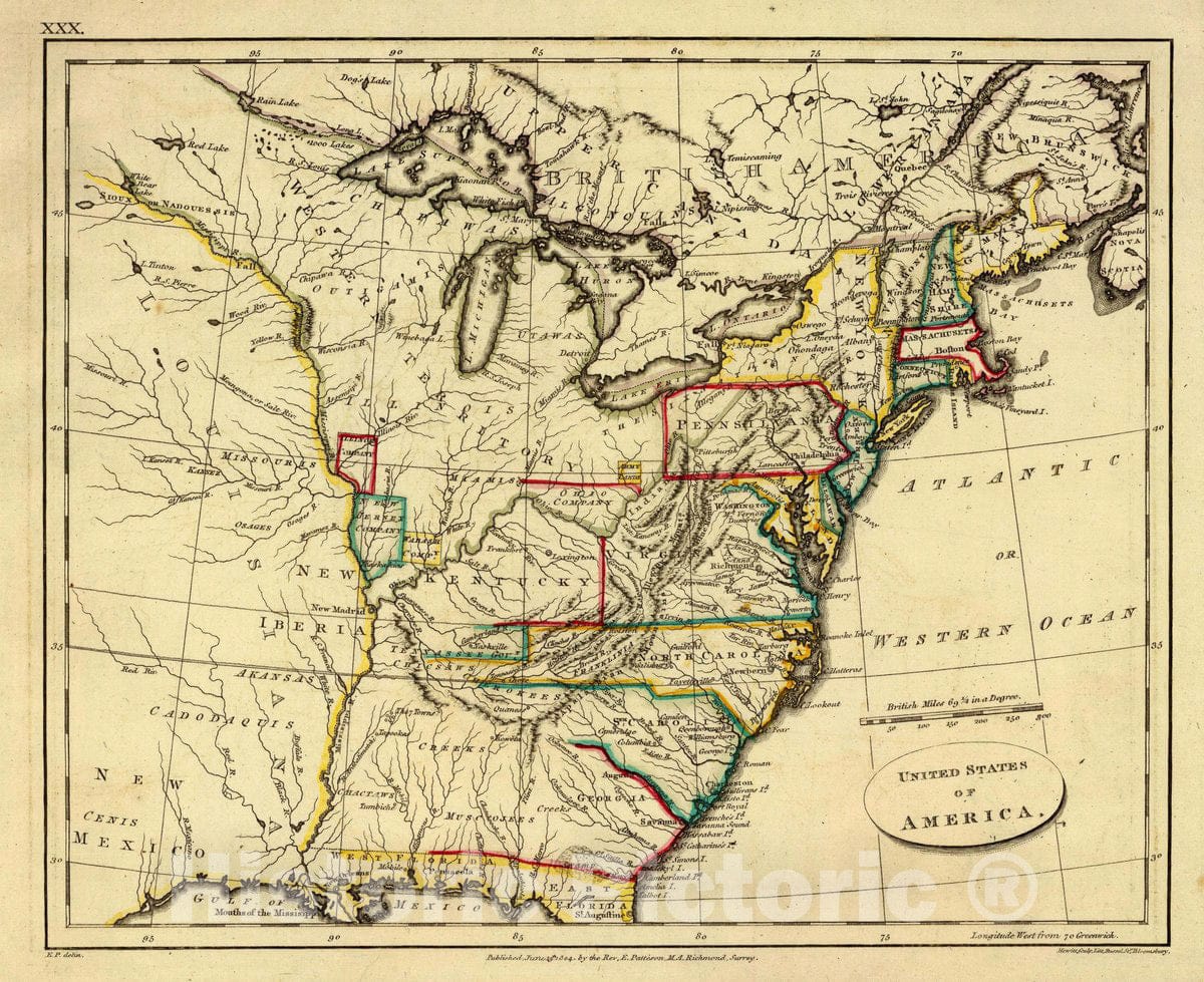 Historic Wall Map : United States of America. E.P. delin. Hewitt, sculp, Litt. Russel St, Bloomsbury. Published June 15th, 1804, 1804 Atlas - Vintage Wall Art