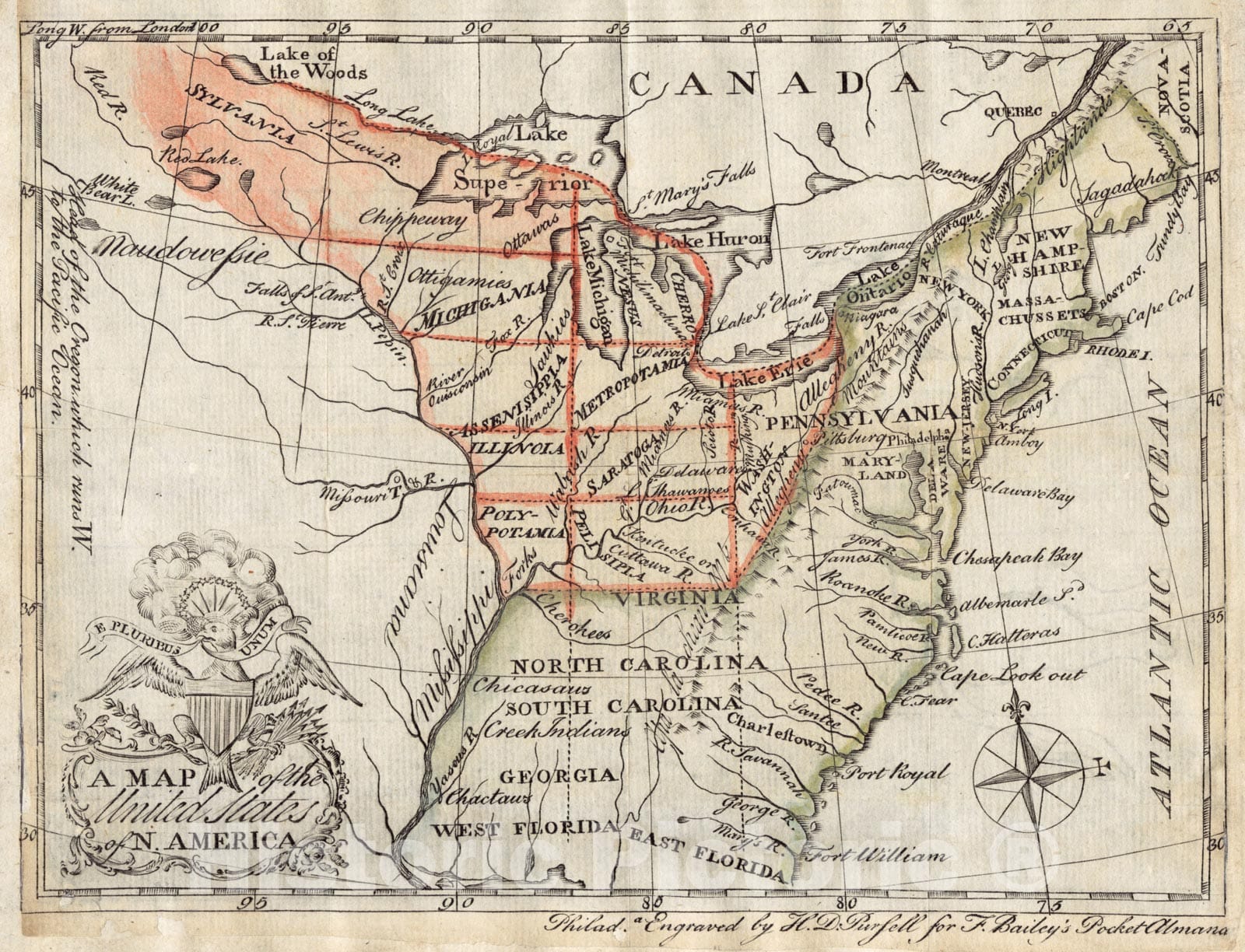 Historical Map, 1784 A map of The United States of N. America, Vintage Wall Art