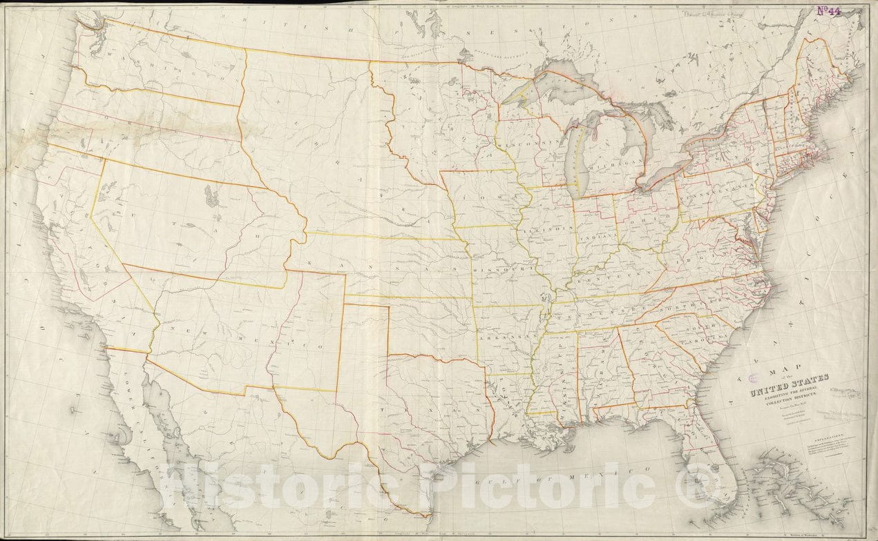 Historical Map, 1855 Map of The United States exhibiting The Several Collection districts, Vintage Wall Art