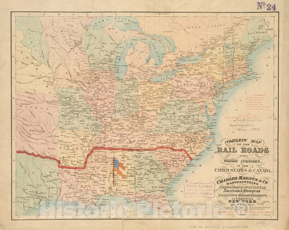 Complete map of the rail roads and water courses in the United States & Canada
