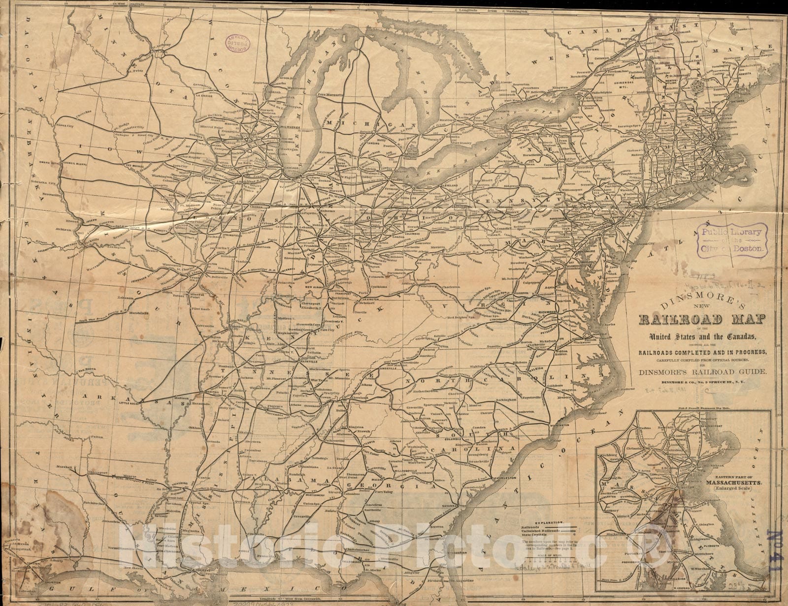 Historical Map, 1860 Dinsmore's New Railroad map of The United States and The Canadas, Showing All The Railroads Completed and in Progress, Vintage Wall Art