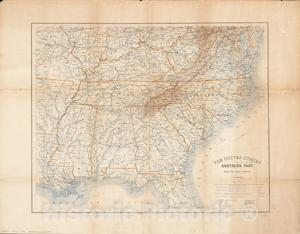 Historical Map, 1866 The United States southern part : from the latest surveys, Vintage Wall Art