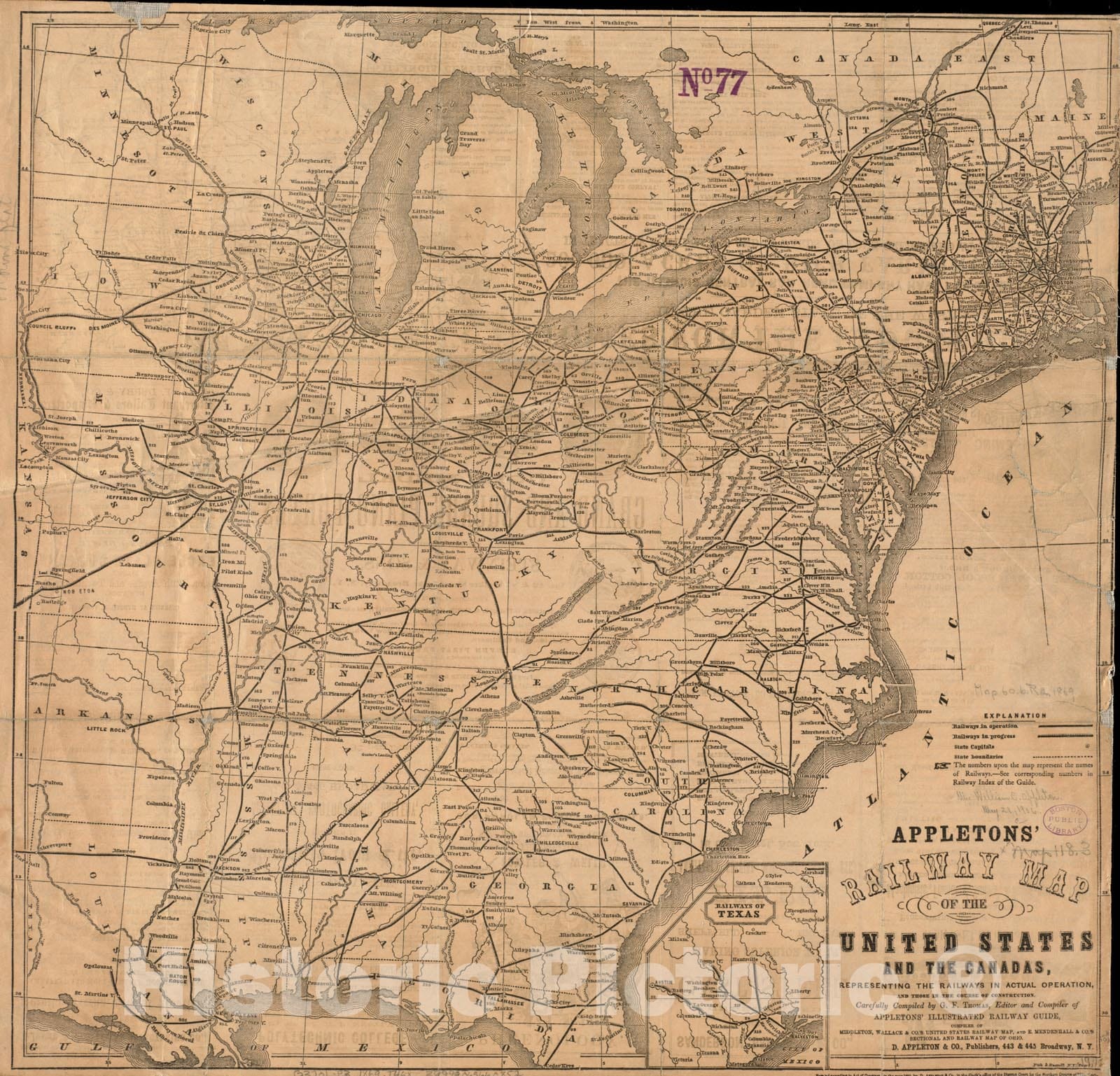 • .Historical Map, 1869 Appletons' Railway map of The United States and The Canadas : Representing Railways in Actual Operation, and Those in The Course of Construction, Vintage Wall Art