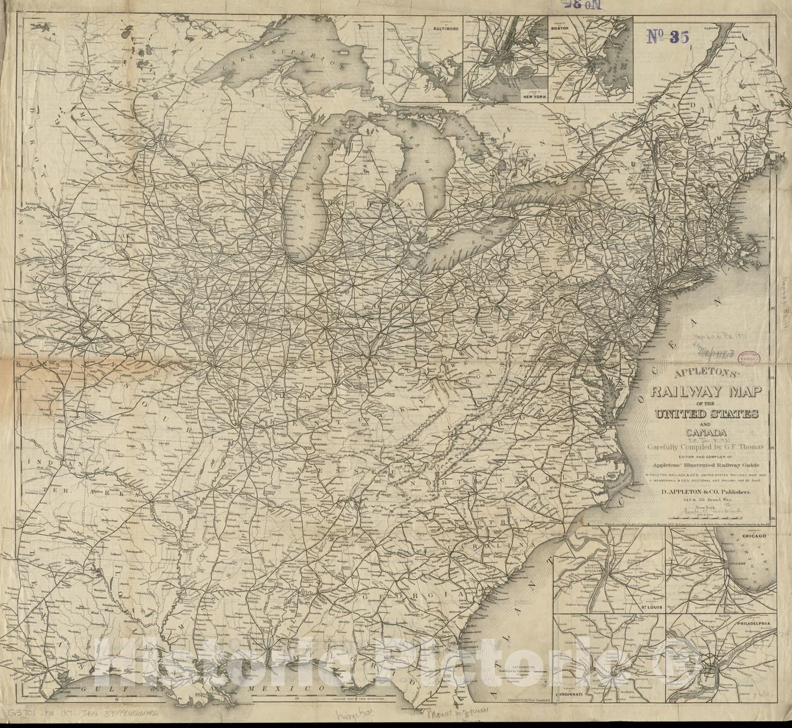 • .Historical Map, 1871 Appletons' Railway map of The United States and Canada, Vintage Wall Art